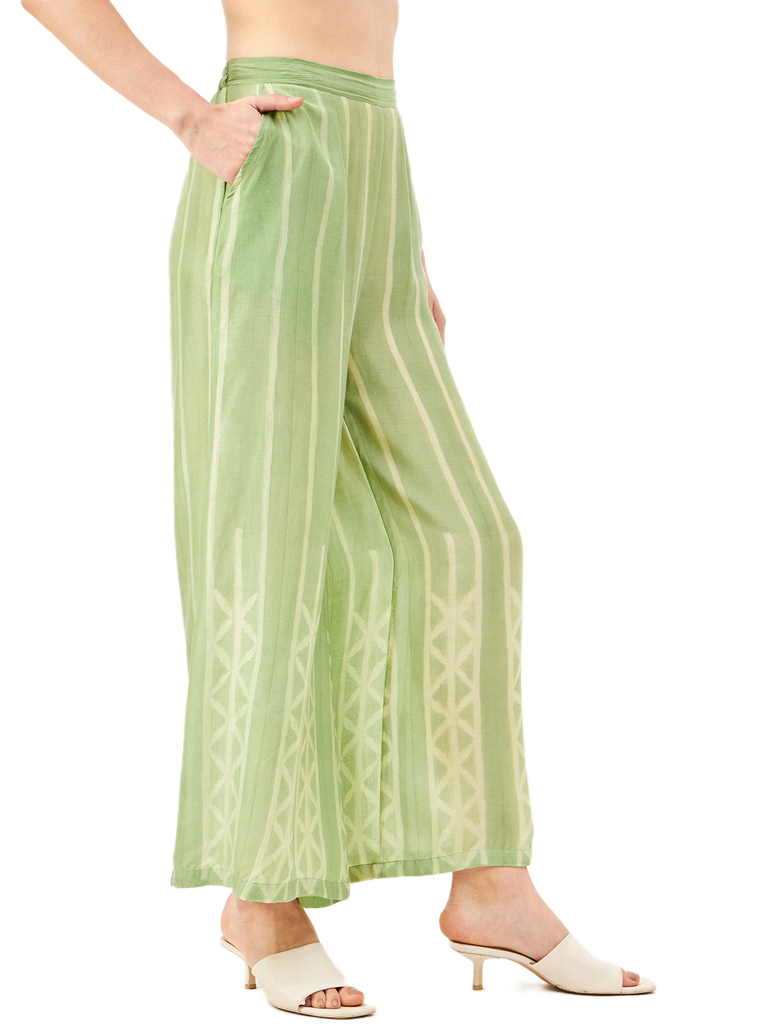 • Flowy Silk-Cupro Palazzo Pants, crafted from a soft blend of plant-based silk and cupro cotton, these palazzo pants are designed for both style and ease. Their relaxed, flowing silhouette moves gracefully with every step, offering all-day comfort without compromising elegance.