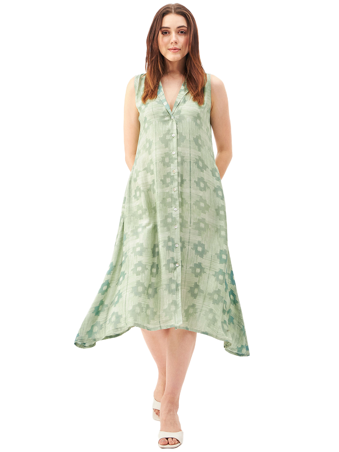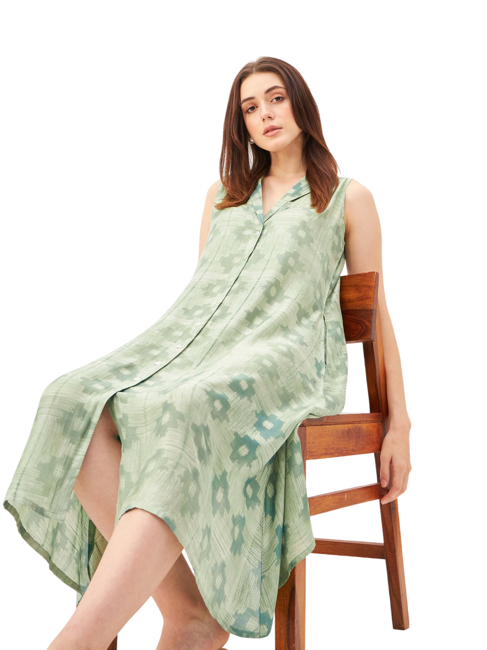 Each piece features unique Shibori dye patterns, celebrating artisanal craftsmanship in every thread. This dress transitions seamlessly from day to night with timeless style and comfort.