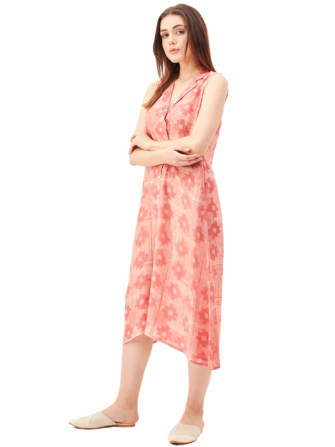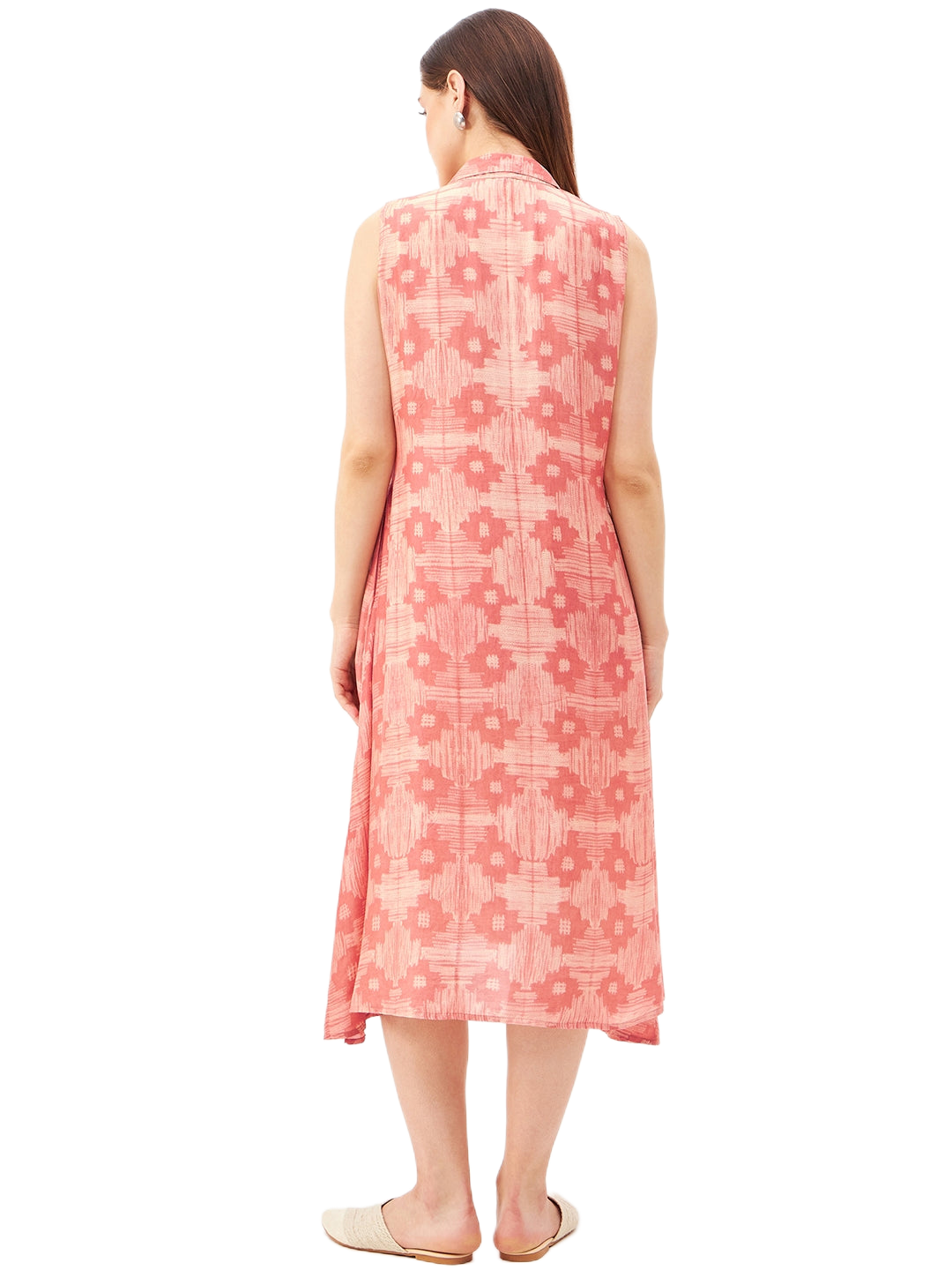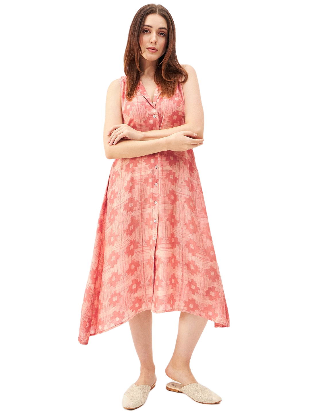 Step into elegance with this handcrafted Shibori dress, designed in a luxurious blend of soft silk and cupro cotton. The round-neck, sleeveless silhouette offers effortless sophistication, while the calf-length cut brings modern versatility.