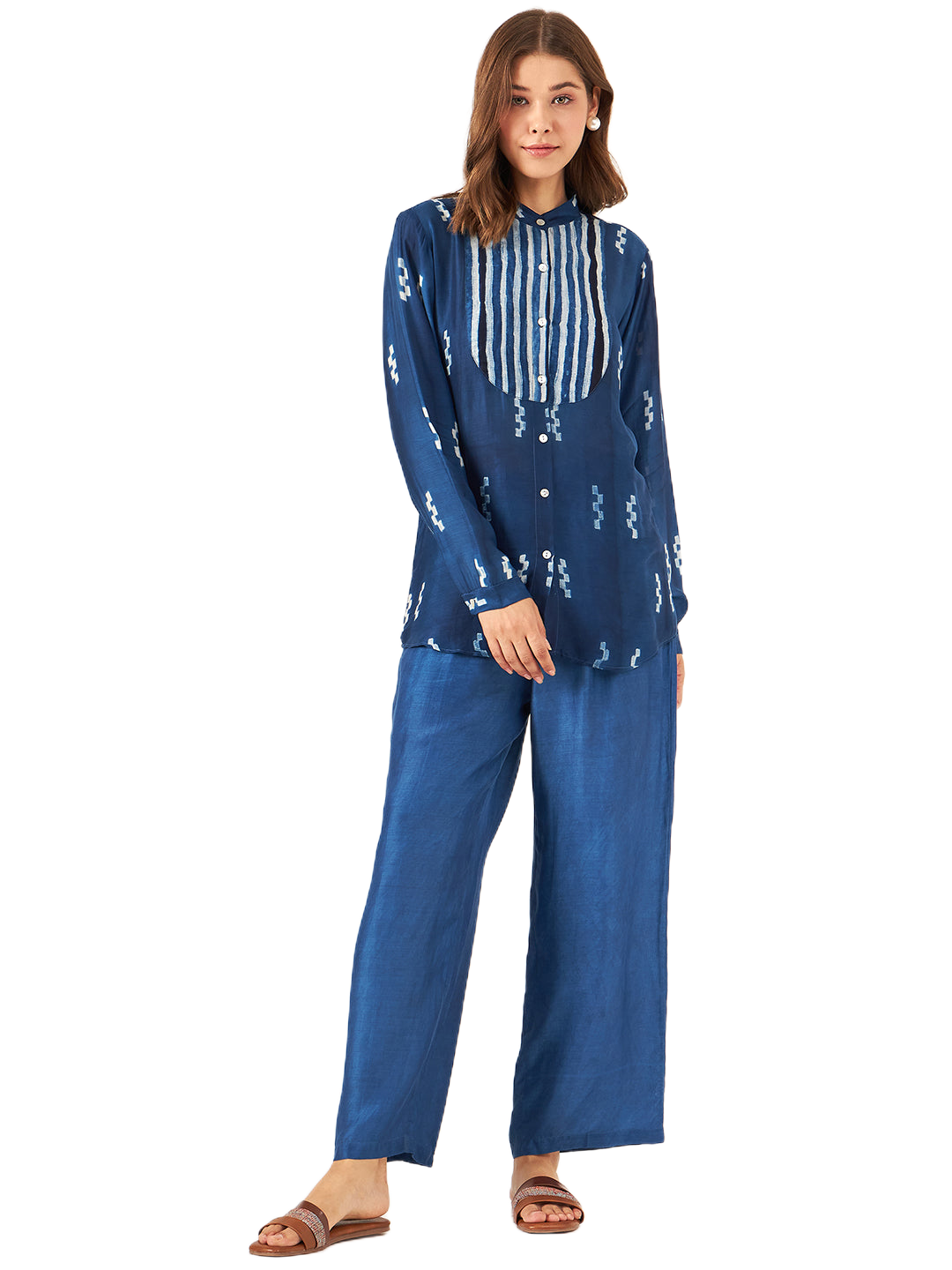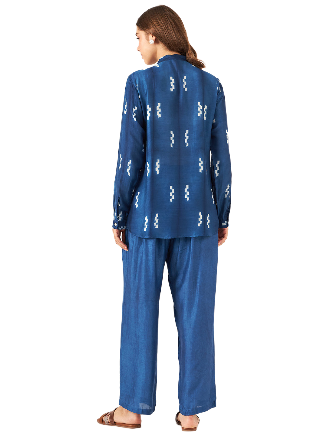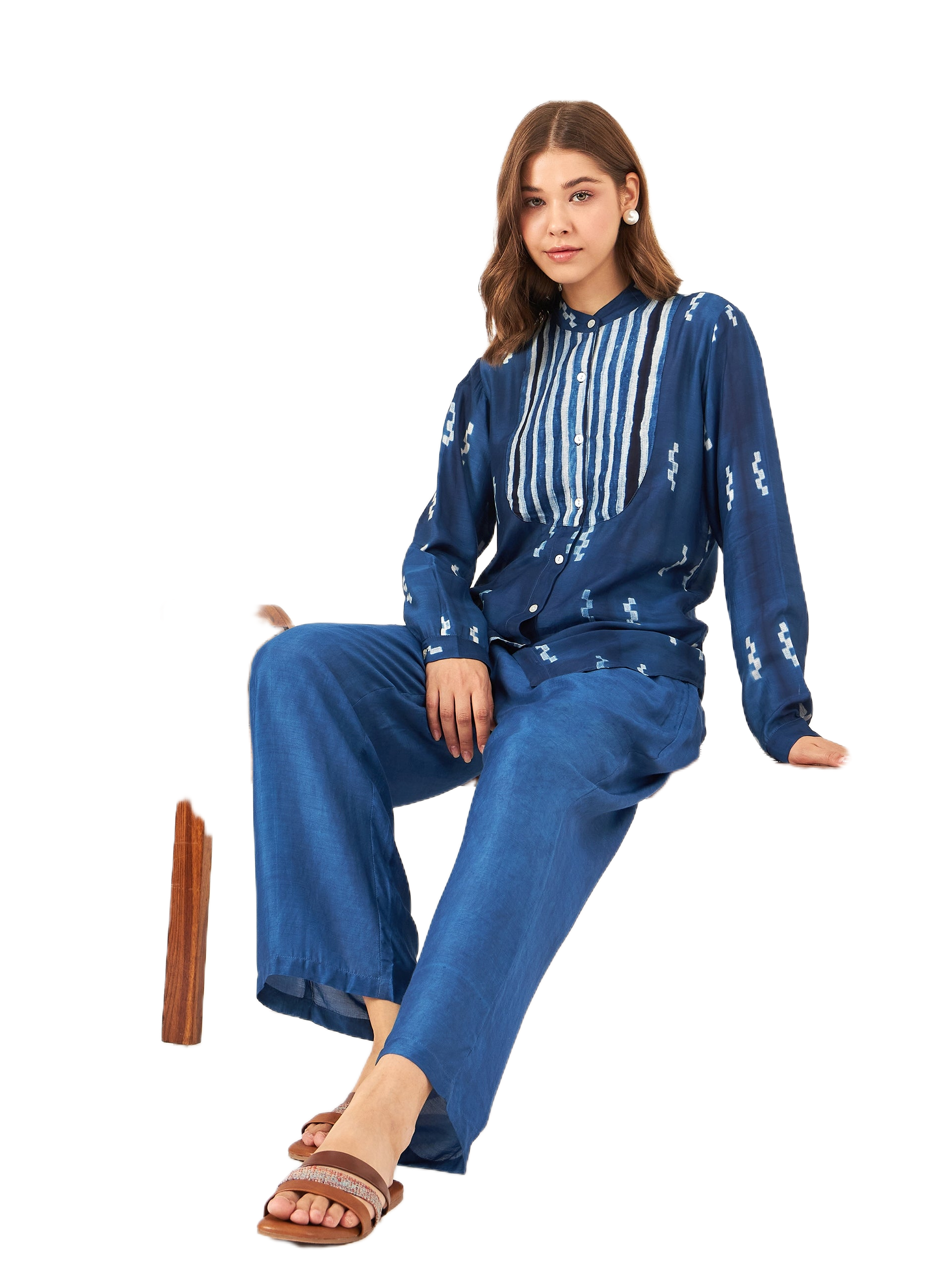 Handcrafted Shibori Shirt- This elegant shirt is handcrafted using the traditional Shibori dyeing technique, making each piece truly one of a kind. It features a front yoke with button closure and full sleeves, blending classic detailing with contemporary style. Crafted from a luxurious blend of plant-based silk and cupro cotton, the fabric is soft,breathable, and eco-conscious—perfect for refined, sustainable fashion.