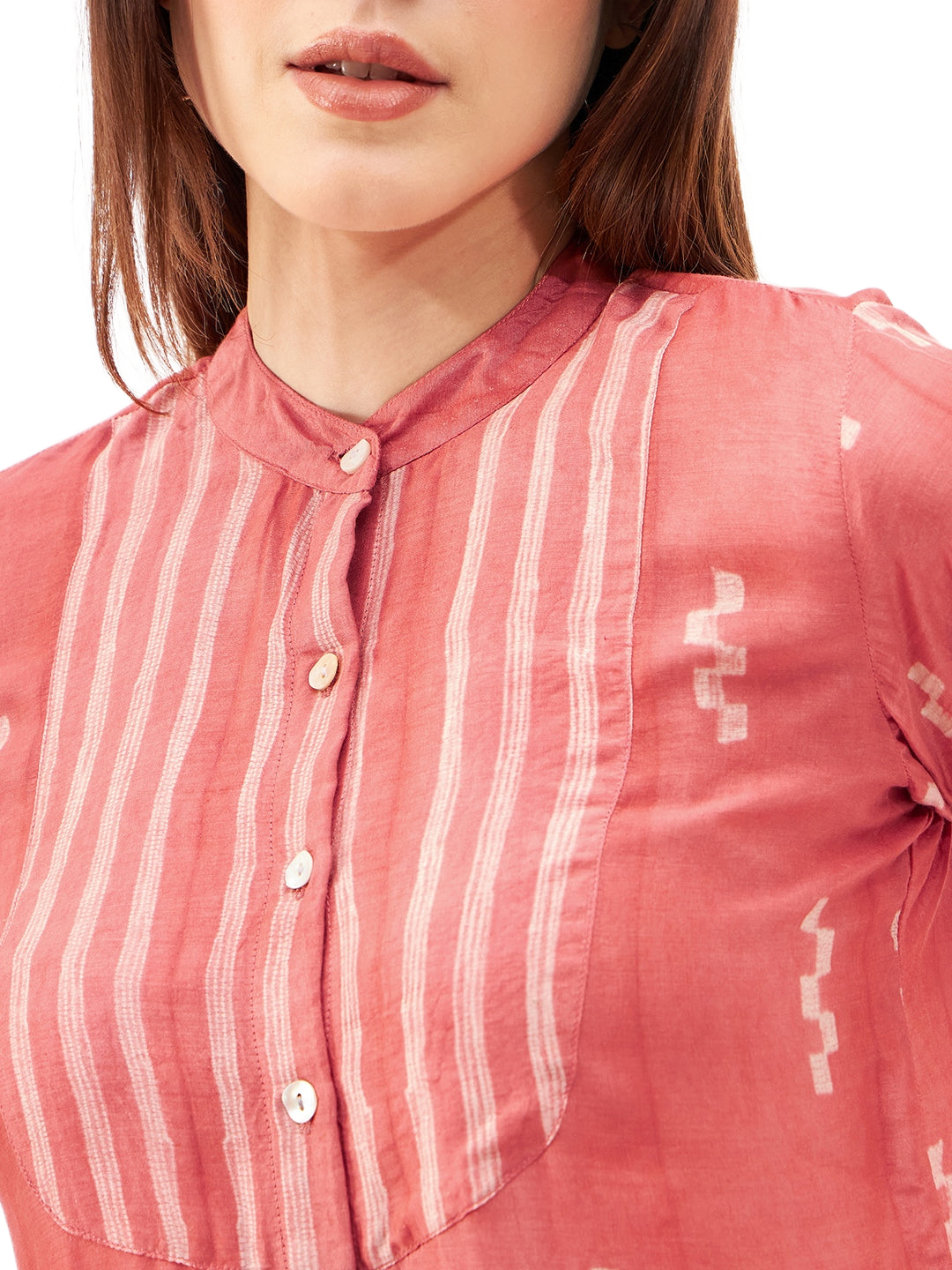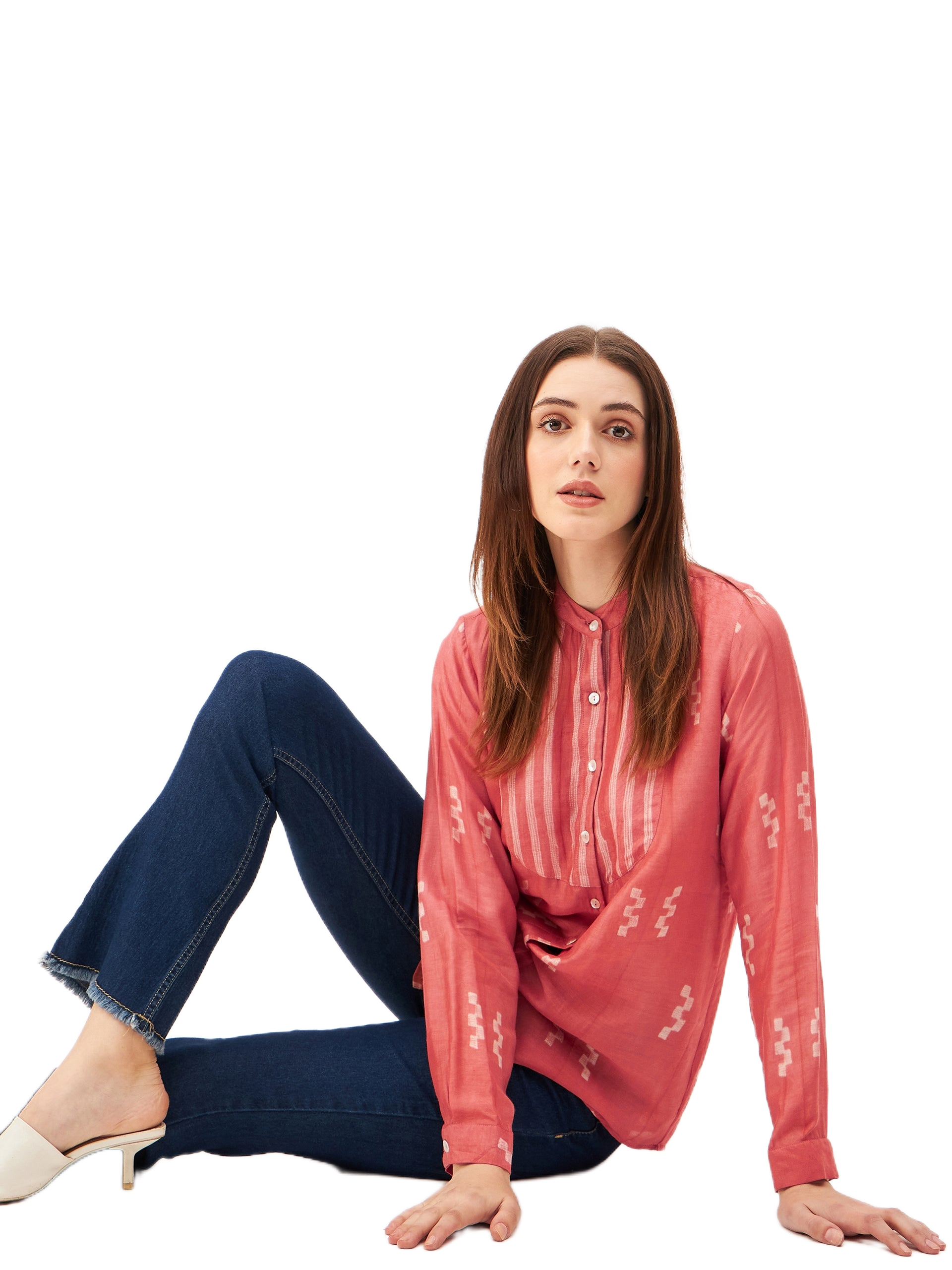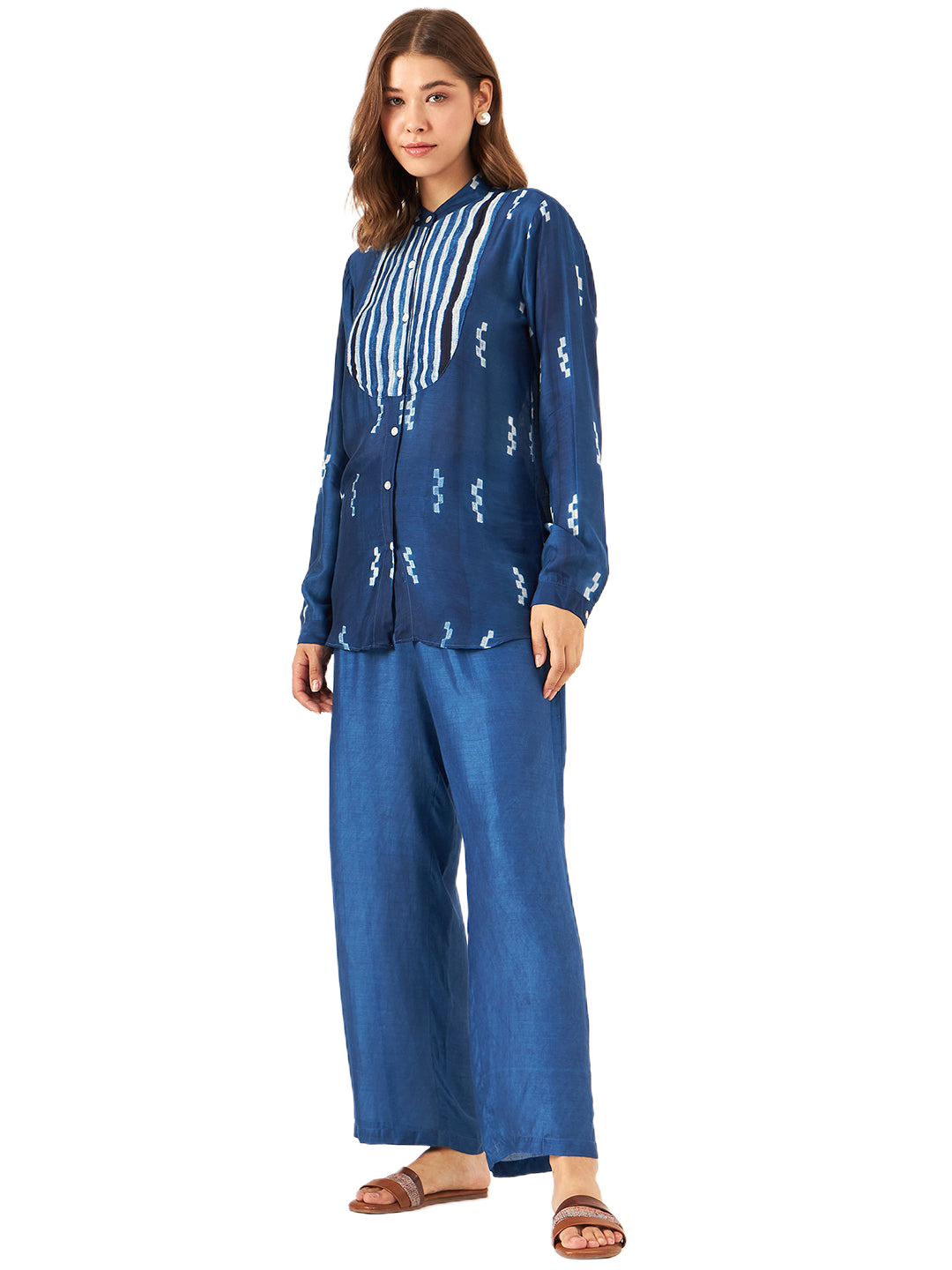 Handcrafted Shibori Shirt- This elegant shirt is handcrafted using the traditional Shibori dyeing technique, making each piece truly one of a kind. It features a front yoke with button closure and full sleeves, blending classic detailing with contemporary style. Crafted from a luxurious blend of plant-based silk and cupro cotton, the fabric is soft,breathable, and eco-conscious—perfect for refined, sustainable fashion.