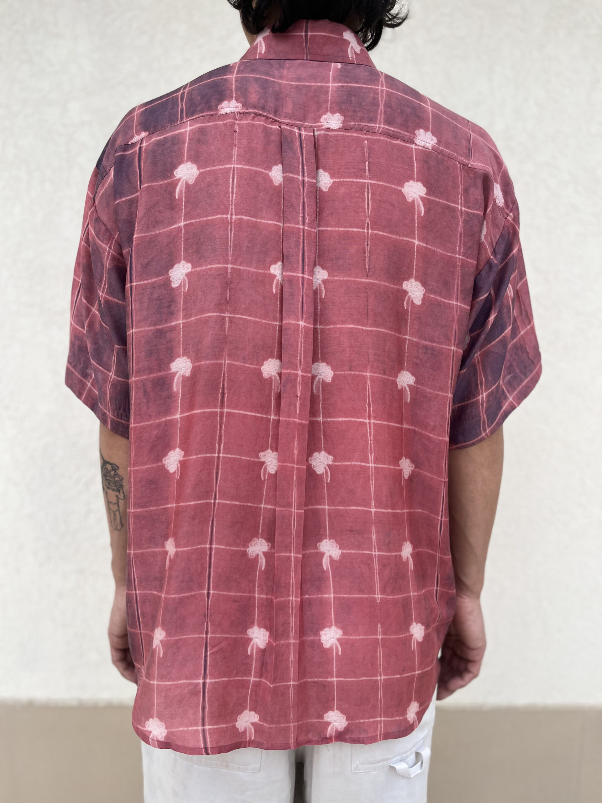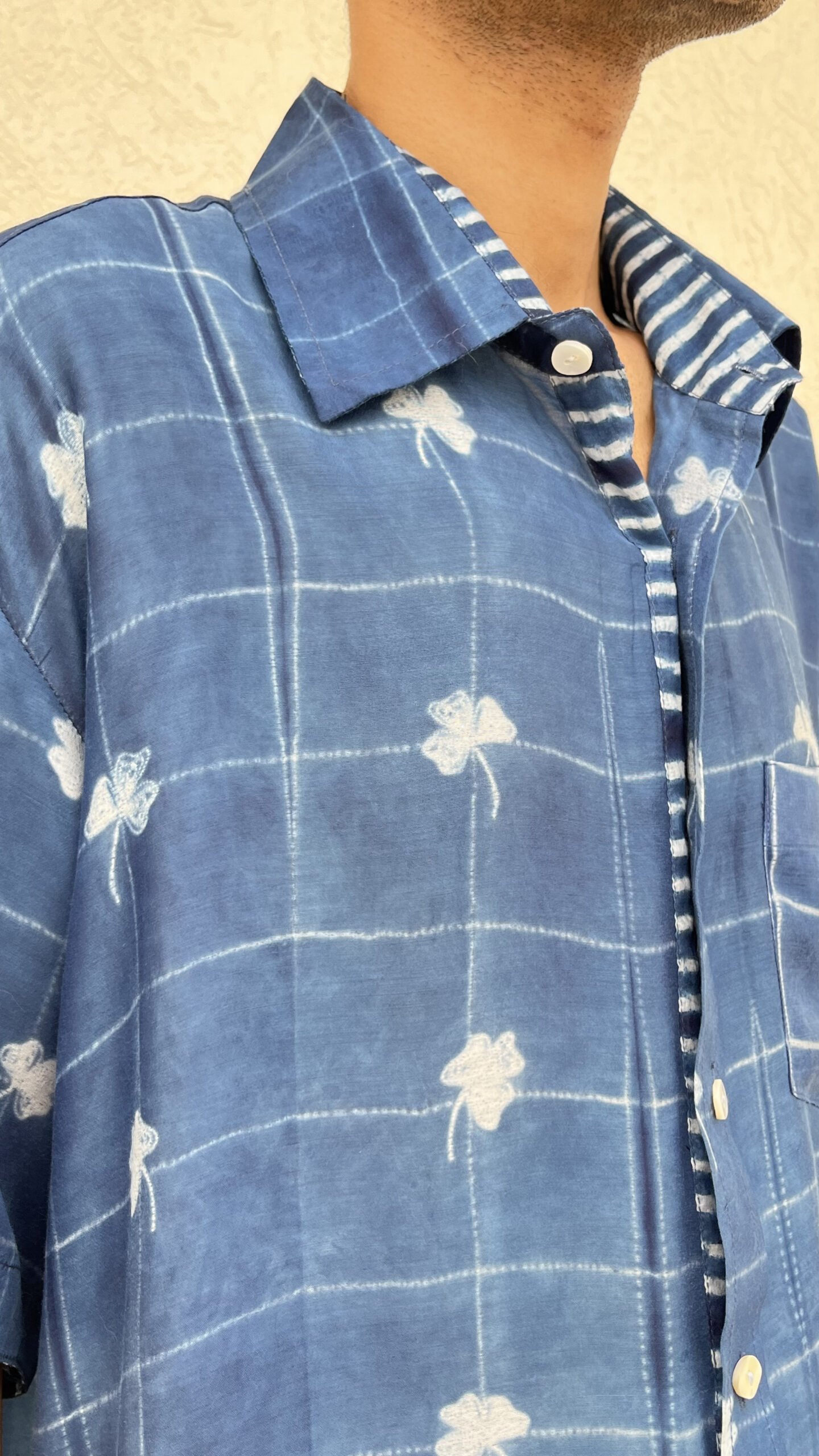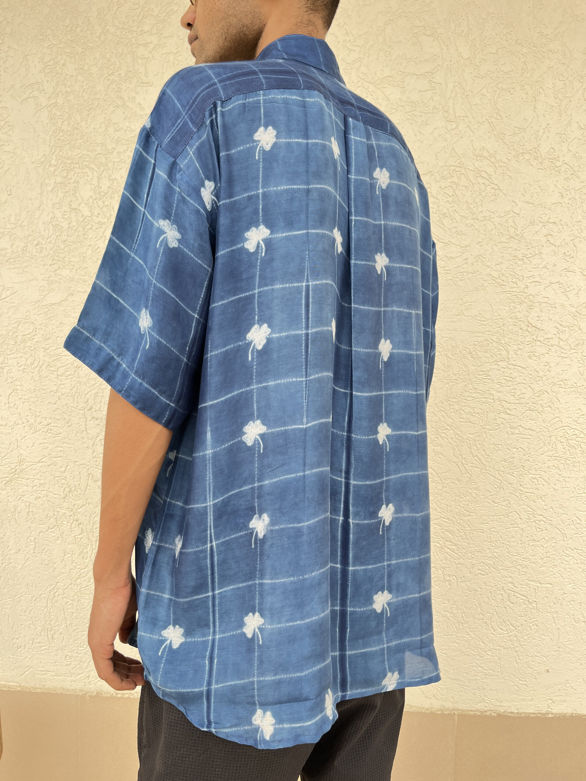 and is detailed with a different handcrafted shibori on the placket, pocket, and sleeve folds. A refined everyday essential