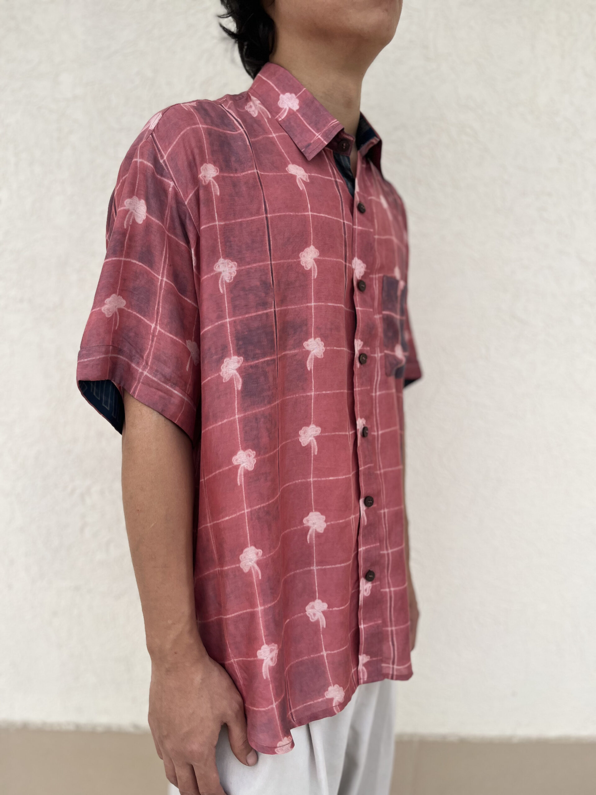 Crafted from a sustainable blend of plant-based silk and cupro cotton, this half-sleeve men’s shirt features a single pocket