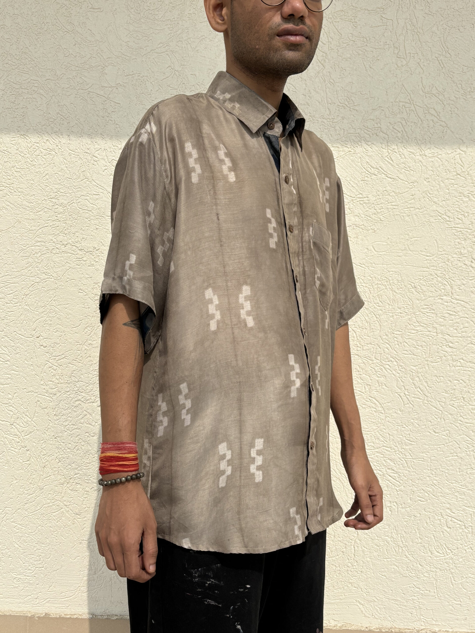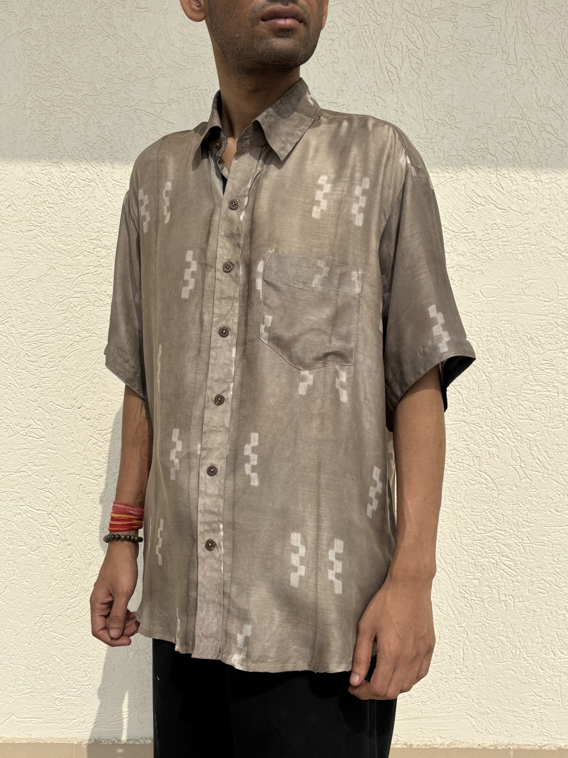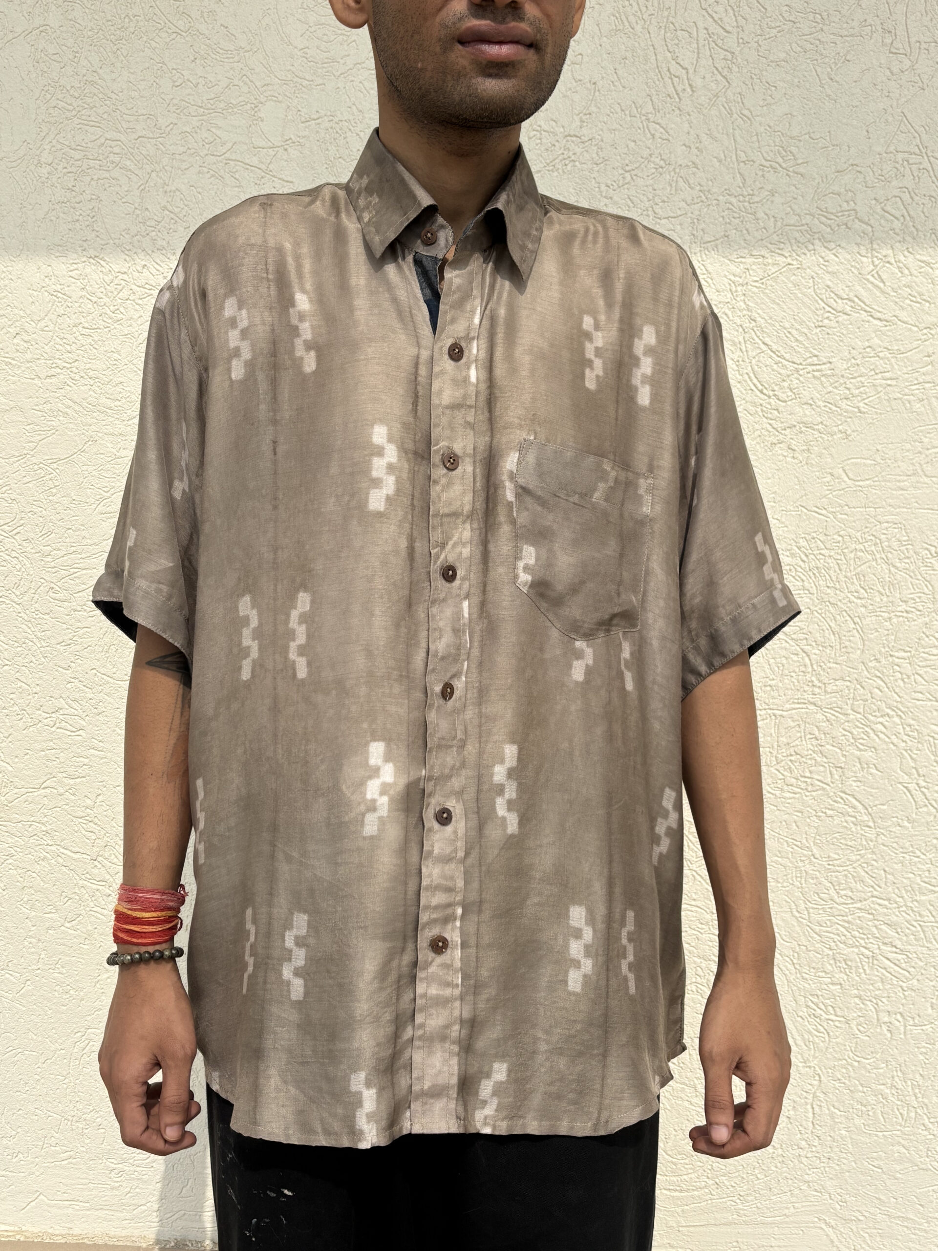 Plant-based silk and cupro cotton men’s half-sleeve shirt in a comfortable fit.