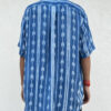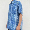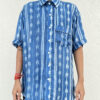 The main body features a shibori pattern, while the placket, sleeves, and pocket are finished with a different shibori technique,