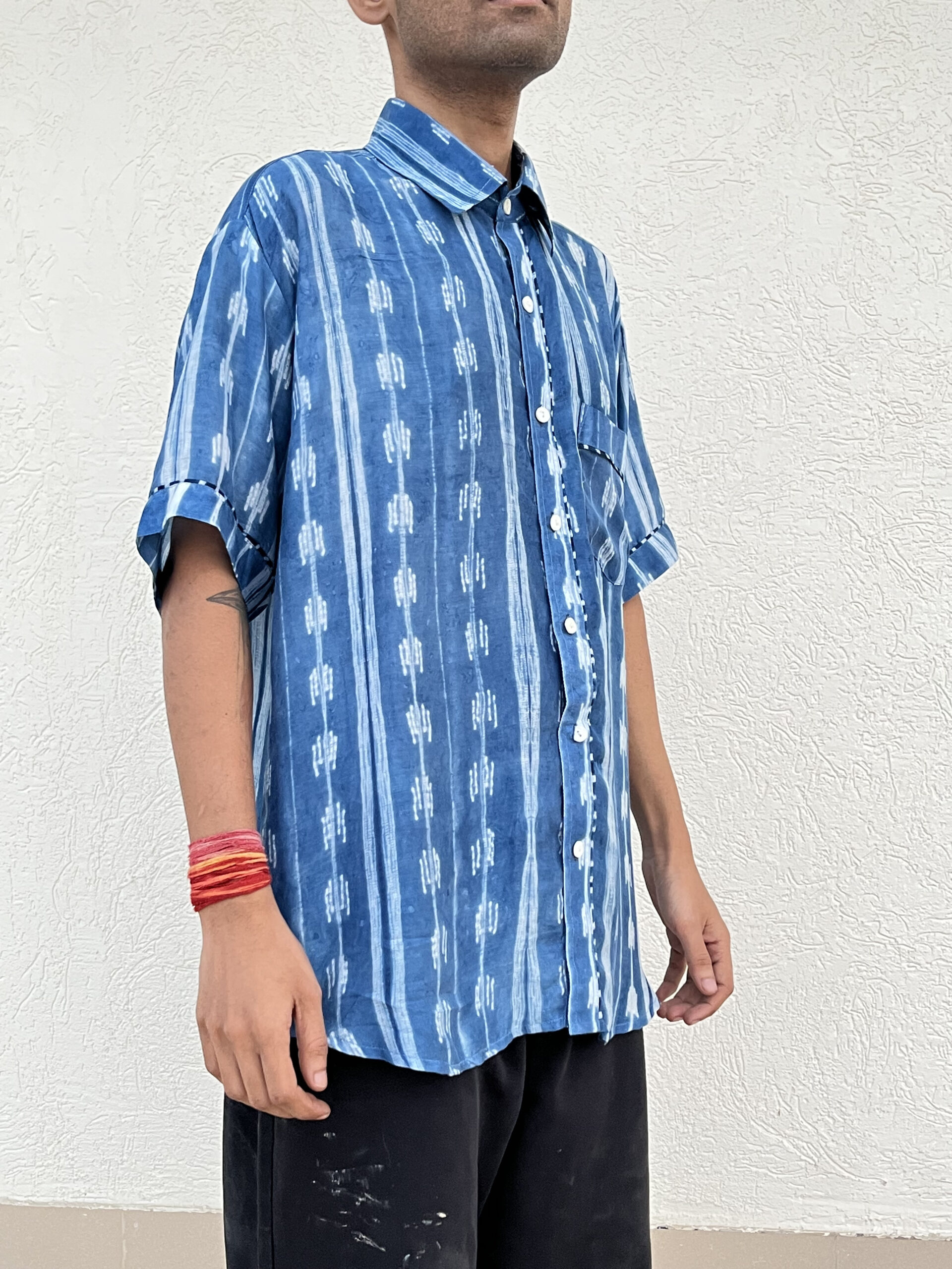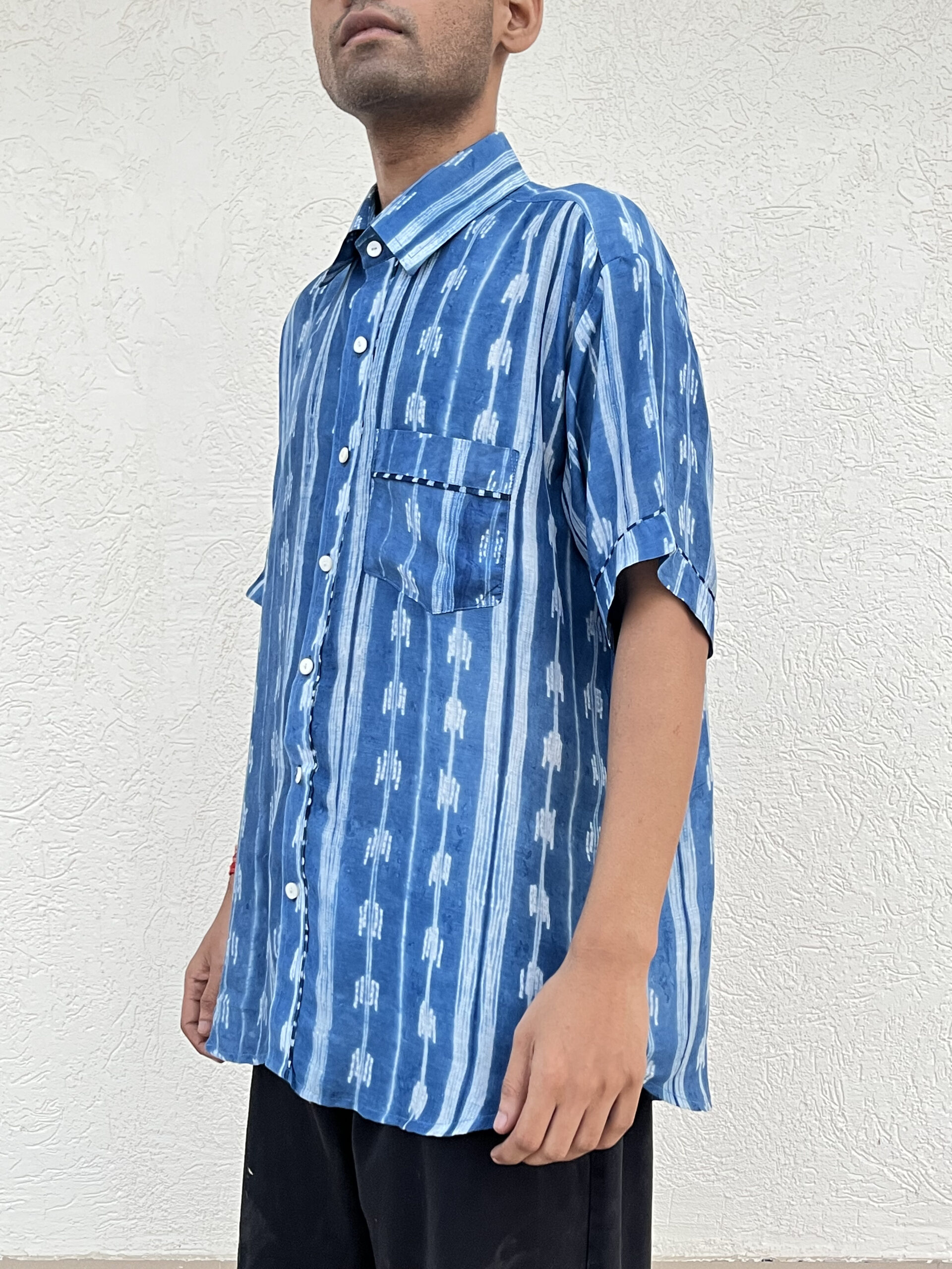 Crafted from a refined blend of plant-based silk and breathable cupro cotton, this handcrafted shibori shirt celebrates subtle detailing.